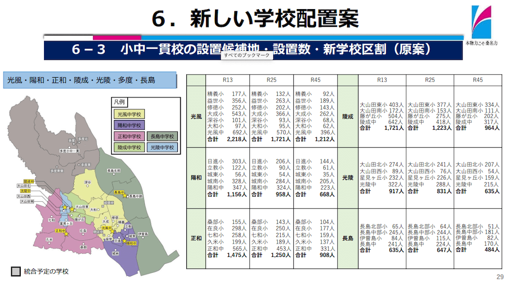 桑名市教育委員会の説明会資料によると、子どもたちにより良い教育環境を提供するには、下記が必要と記載されています。 ・一定の集団規模の確保・多様な価値観に触れる・多くの同世代と経験を重ねる つまり、「小規模校の教育はダメ」というのが学校統廃... -
