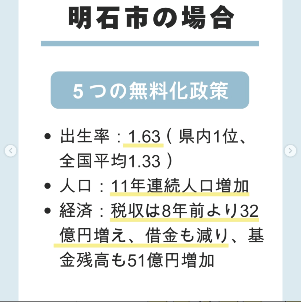 その結果、明石市の税収は8年前より32億円増え、借金も減り、市の「基金残高」も市長就任前より51億円増えました。
